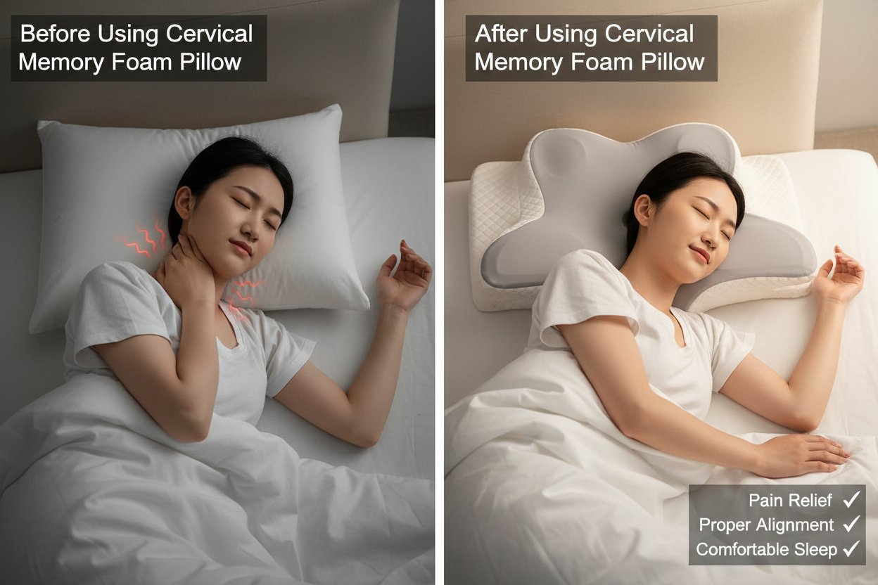 Experience better sleep with our Ergonomic Cervical Memory Foam Pillow, designed to support natural neck and spine alignment. The contoured memory foam adapts to your shape, offering comfortable support for side, back, and stomach sleepers while helping reduce neck and shoulder discomfort for a more restful night.